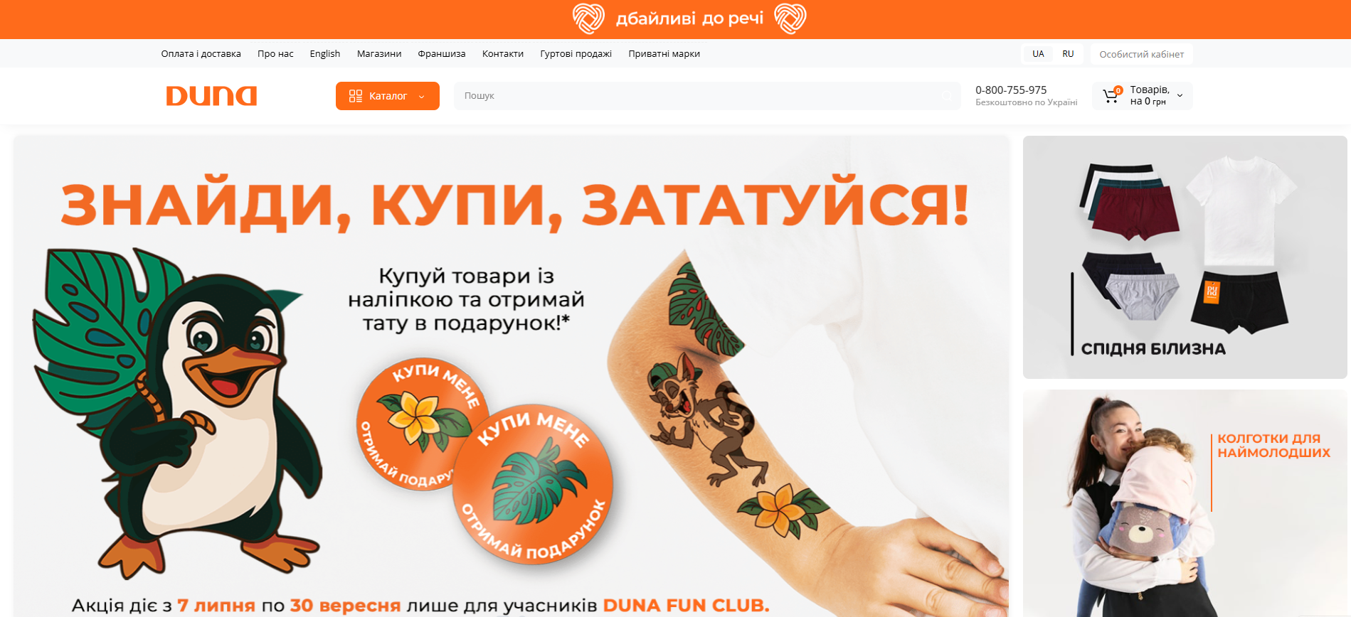 Скопіюйте або перепишіть промокод та натисніть на кнопку «Перейти в магазин». Після чого ви перейдете безпосередньо на сторінку Duna.ua.