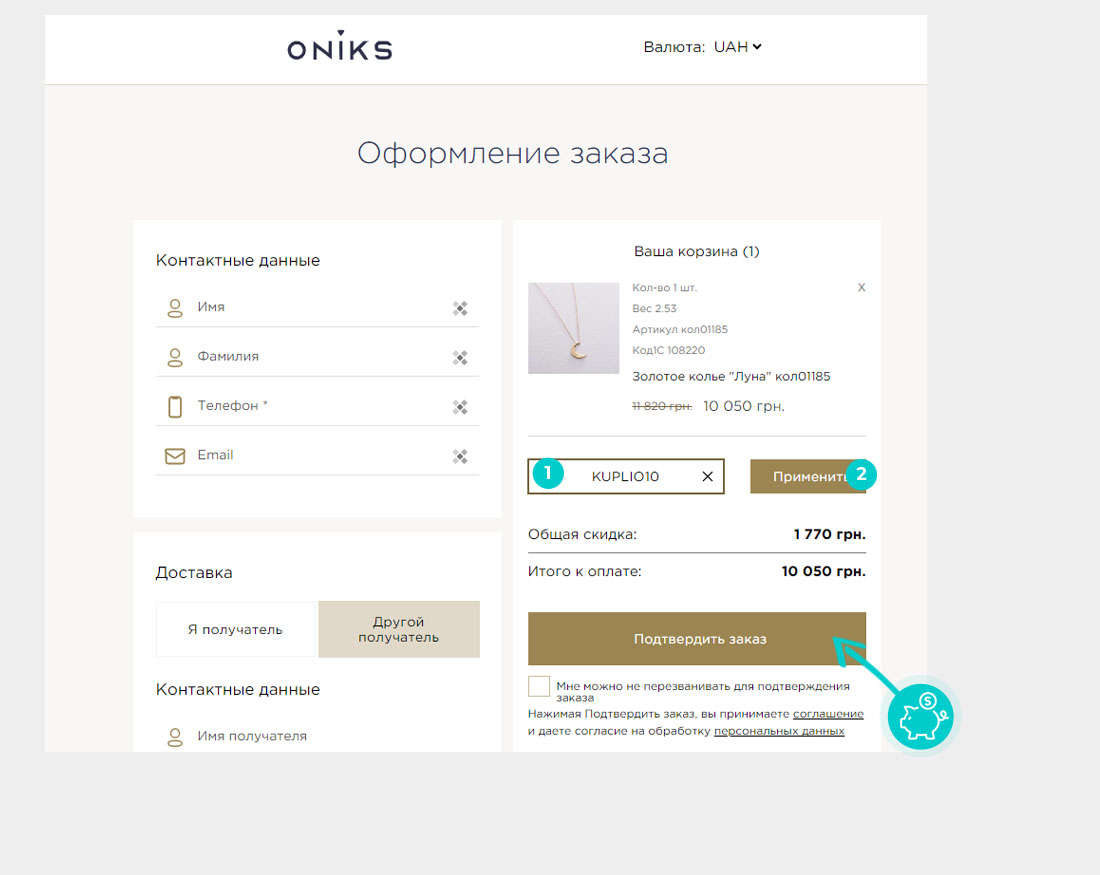 Не знаєте, як саме використати промокод на знижку Oniks.ua? Ознайомтеся з інструкцією, яка допоможе вам легко та швидко застосувати промокоди під час купування: